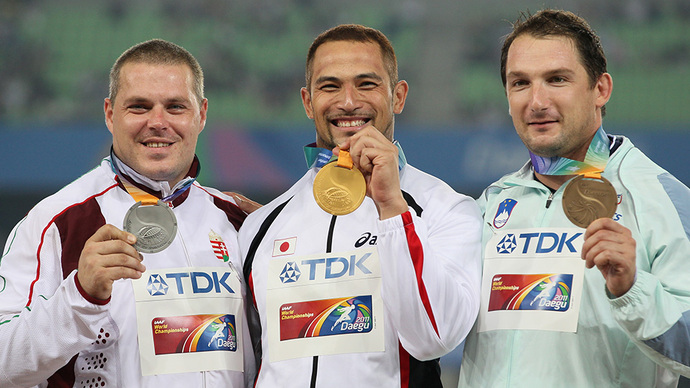 震災を受け陸上界から活発な支援 テグ世界選手権で室伏広治が金メダル/中長距離種目で5つの入賞 福島が2種目でセミファイナルへ/日本選手権混成で右代が日本人初の8000点超え 久保倉が400mハードル55秒34の日本新/各カテゴリーの国際大会で日本勢が活躍 ユニバーシアードで大迫傑が金/白熱のロンドン五輪マラソン代表選考