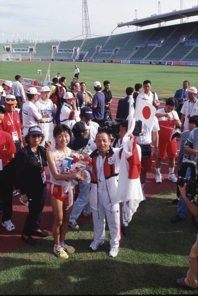 第13回アジア大会は12月に、タイ・バンコクのタマサート大学メインスタジアムで開催された。陸上競技は12月6日の女子マラソンで開幕。間を置いて12月13日に再開され、12月20日の男子マラソンで最終日を迎えた。日本は金12、銀4、銅8のメダル・ラッシュで、3大会ぶりのふたケタに。その口火を切ったのが、女子マラソンの高橋尚子(積水化学)だった。
