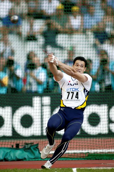 男子ハンマー投の室伏広治(ミズノ)は、2大会続けてのメダル獲得で、5投目に80m12をマークして3位。プラハ国際で大記録を出した後、7月上旬に帰国。7月末、ウエイトトレーニング中に腰を痛めるアクシデントに見舞われた。さらに、パリへ出発する3日前の8月15日には、中京大のサークルで滑って転倒。右肘を強打し、欠場も考えるほどの事態だったことを試合後に明かした。