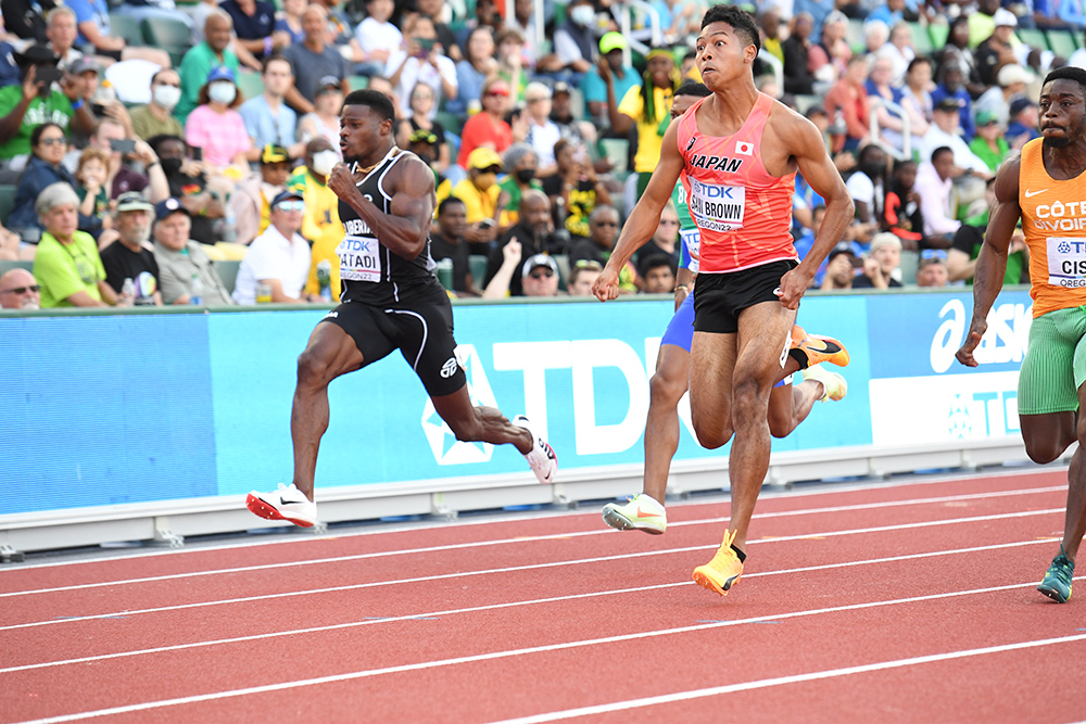 男子100mではサニブラウン・アブデル・ハキーム(タンブルウィードTC)が、この種目で日本人初の決勝進出を果たし、7位に食い込んだ。