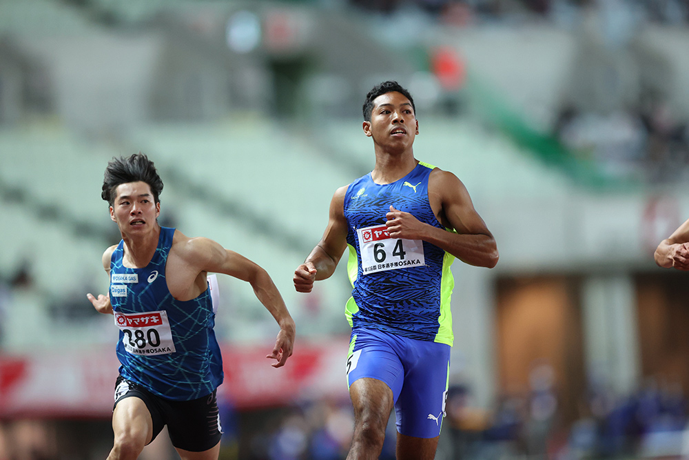 10秒10で2位に坂井隆一郎(大阪ガス)、U20日本歴代3位の10秒16で3位に栁田大輝(東洋大)が食い込み、世代交代の足音が響き始める。
