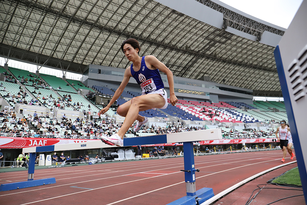 男子3000m障害では同じ順大の三浦龍司が8分15秒99と5月に出したばかりの日本記録(8分17秒46)を再び更新。しかも、残り2周の水壕でバランスを崩して転倒するアクシデントをものともせず、初優勝と初の五輪代表内定もつかむ快走を見せた。東京五輪で「日本ではまだまだマイナーな種目。もっと認知してもらえるように、魅せる走りをしたい」と意気込みを語る。2位の山口浩勢(愛三工業)が8分19秒96、3位の青木涼真(Honda)が8分20秒70でそろって五輪参加標準記録(8分22秒00)を突破し、上位3人が五輪代表に内定した。