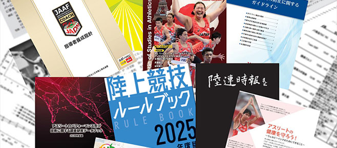 方針・指針 JAAF vision-2017- JAAF REFORM -新たなステージへの挑戦- JAAF 人権ポリシー JAAF インテグリティ行動指針 競技者育成指針 指導者養成指針 健康・安全・アンチドーピング 安全ナビ-すべてのアスリートが安心して競技に取り組める環境を目指して- 【Well-being 】アスリートの健康を守ろう! 不適切な鉄剤注射の防止に関するガイドライン 【アンチ・ドーピング】クリーンアスリートをめざして2024 研究・報告 陸上競技研究紀要 陸連時報 タレントトランスファーガイド SDGs・D&I 日本陸連とSDGs ダイバーシティ&インクルージョン 出版物・発行物 ルールブック 2025年度版 審判ハンドブック 2025-2026年度版 陸上競技コーチングブック 今より強く!を目指して~アスリートの身体づくりと食のエッセンス~ 中学校部活動における陸上競技指導の手引き 雑学 陸上競技ガイド ルール解説