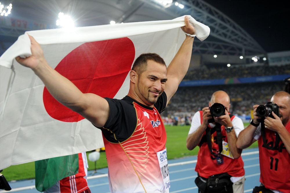 2002年はアジア大会を連覇し、翌03年は世界歴代3位の84m86をマーク。同年のパリ世界選手権は銅メダルとなったが、2004年のアテネ五輪でついに世界の頂点へ。試合時は2位だったが、表彰式を終えてから1位の選手のドーピング違反が発覚し、繰り上がりで金メダルを獲得。9月23日のスーパー陸上(横浜国際)で金メダル授与式が挙行された際に、「真実の金メダル」と語って、胸を張った。